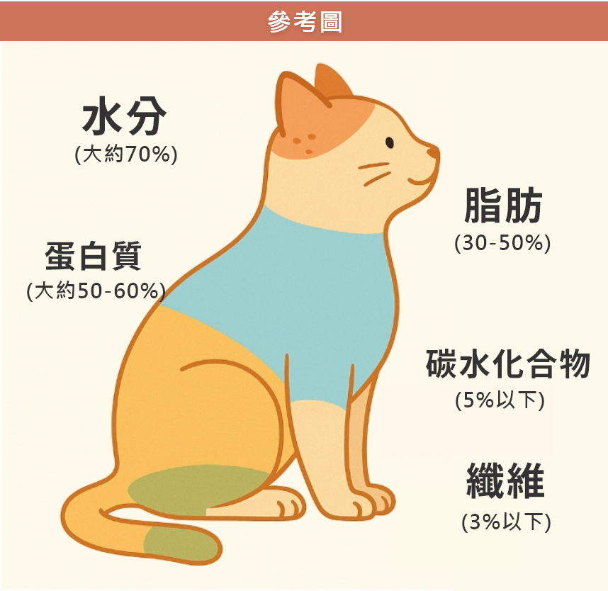 📝 小提醒:纖維雖不是貓咪的必需營養素,但仍廣泛存在於商業飼料中,目的是幫助腸胃蠕動與改善排便狀況。