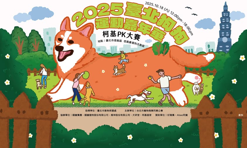 活動日期 2 025年10月18日(星期六)活動時間 12:00 PM – 6:00 PM活動地點 臺北市信義廣場狗公園(臺北市信義區松壽路與松智路口)主辦單位 台北市寵物商業同業公會指導單位 臺北市動物保護處核心活動 柯基PK大賽: 包含柯基短腿競速賽、飼主障礙挑戰賽等。公益服務 免費提供晶片植入與狂犬病疫苗施打服務 (數量有限)。教育宣導 寵物醫療與犬隻行為講座、宣導正確飼主責任與動物福利。其他 豐富多元的寵物市集、互動攤位、免費獸醫師健診。